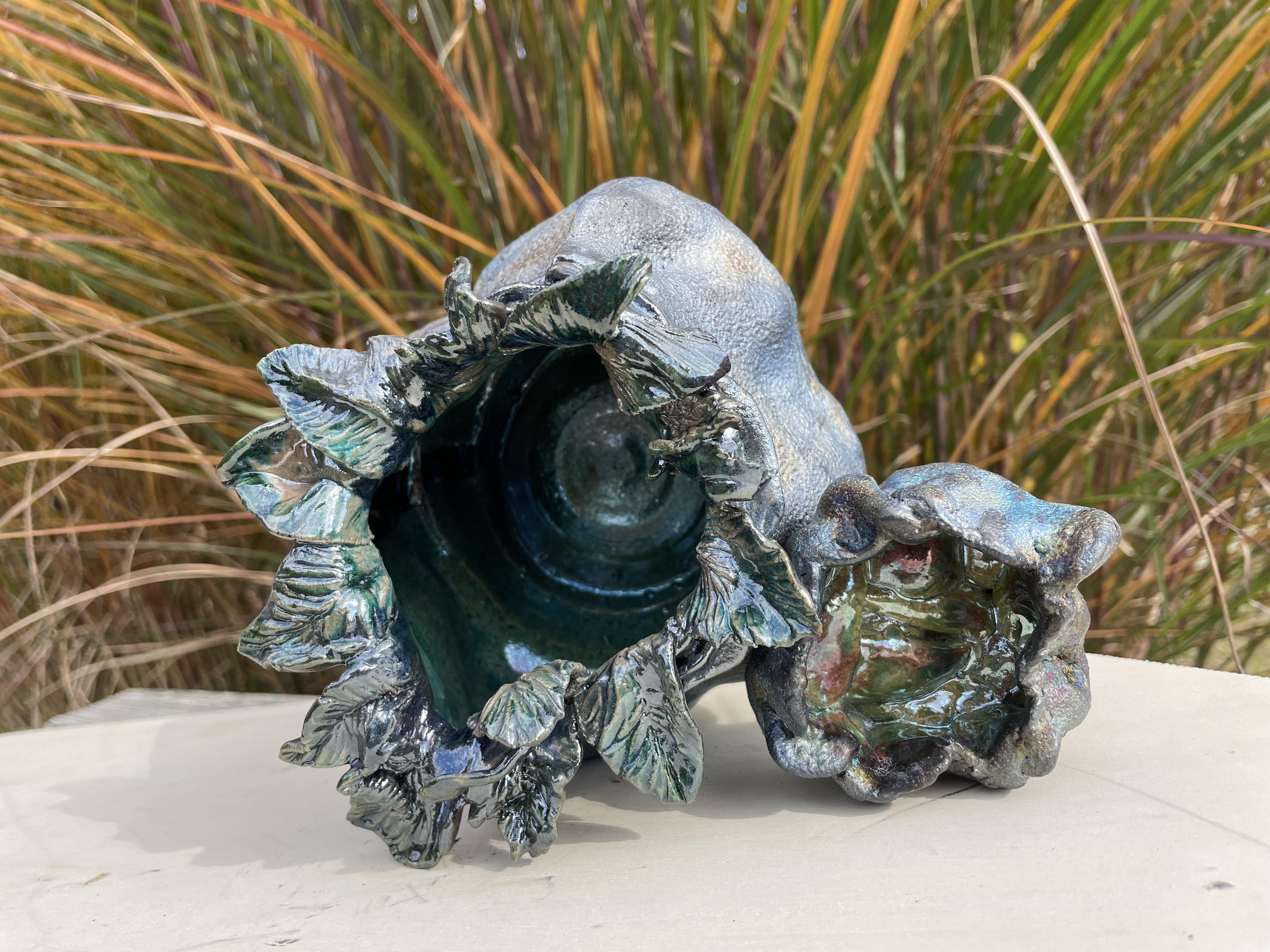 There is a long lineage of craftsmen in my family (from Toussiant Giroux to Thomas Giroux), and for me the primary medium I am drawn to is clay. Ceramics are my way of making meaning and understanding my world. Access to craft is never a given, it is something I build into my life thanks in part to family and friends. I take my work in ceramics seriously, finding that it allows me to unite concept, heart, and process with my hands. I throw on the wheel, teach workshops, hand build functional and nonfuncational sculptures, as well as maintain a regular practice of 2D visual art making (painting & drawing). I’m fascinated by the fragility and strength of ceramics and of the alchemic process of changing mud to stone. My work is in it’s seedling stage, as I have begun to take this seriously as of this past year with the project Fragile Haven (see below).
